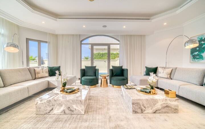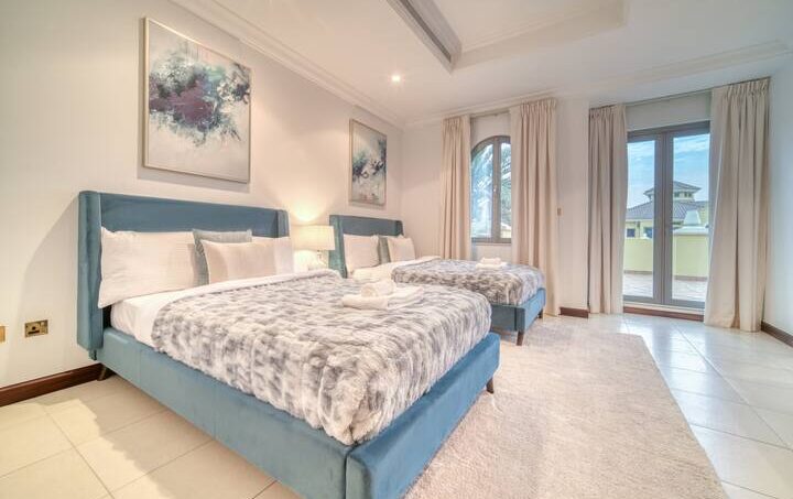 The most lavish and restful vacation you could ever imagine awaits you at this five-bedroom villa with maid’s room & private pool situated on the renowned Palm Jumeirah offering splendid Dubai skyline views and a private beach just a few steps from your door. Palm Jumeirah offers a perfect balance of luxury & convenience with top notch restaurants, cafes, & supermarkets along with a variety of nearby attractions such as Atlantis, The Pointe, & Burj Al Arab to name a few.