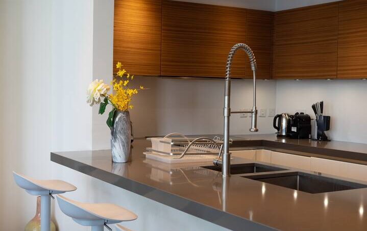 The fully fitted American style kitchen comes complete with all the necessary appliances for a seamless stay and those special extras of high-quality cabinetry and worktops that adds to it’s established air of elegance.
