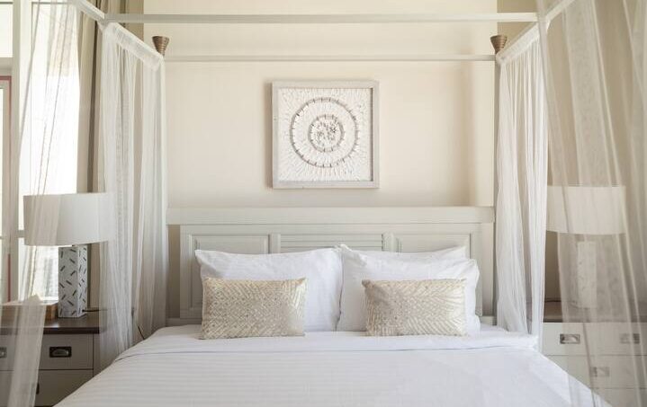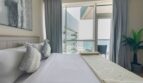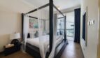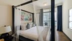 The master bedroom is elegantly styled and features a king-sized bed with two bedside tables. You’ll have access to a wardrobe.