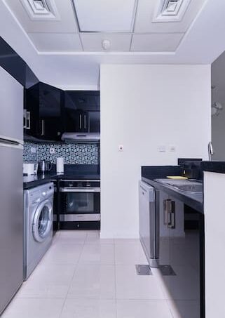 – Washing machine, dryer, hairdryer, iron and ironing board
