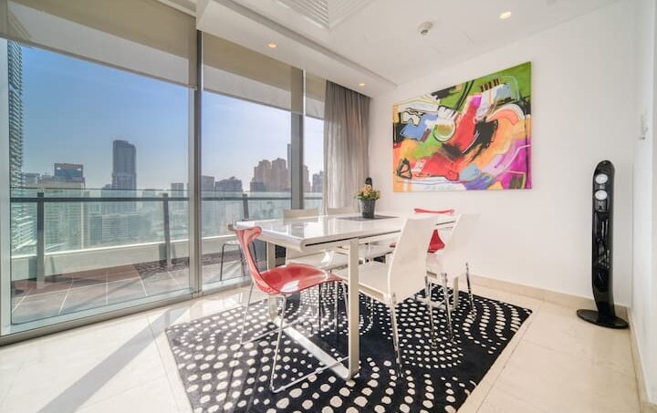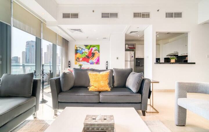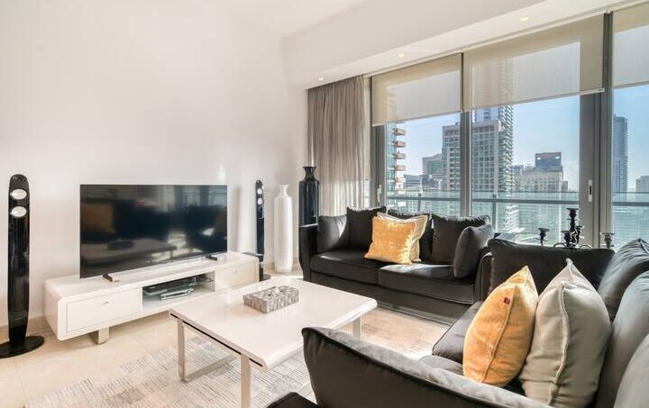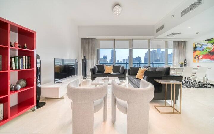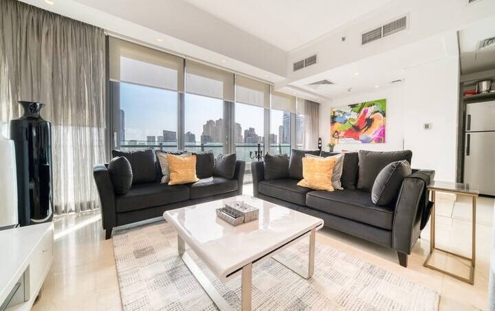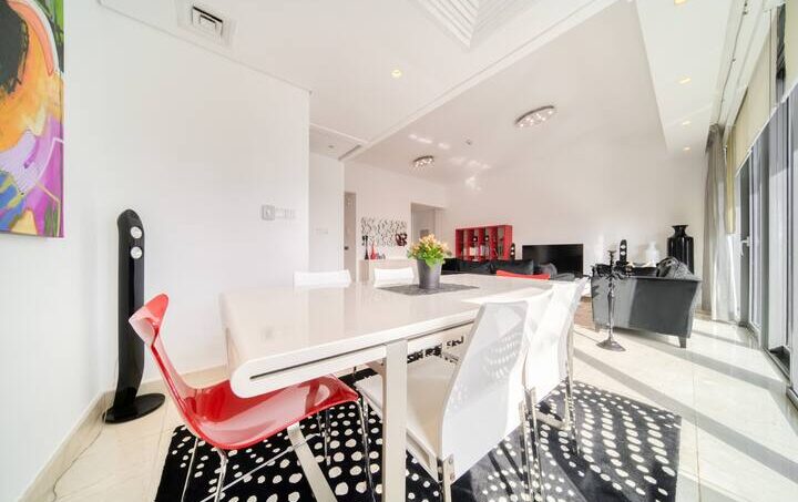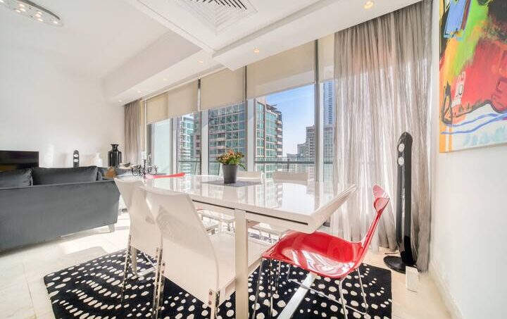 Start your mornings with sunshine, yachts and the sparkling blue in this luxury three-bed apartment, with a view of Dubai Marina and all its opulence. Enjoy a stroll along the promenade to the Dubai Marina Mall and grab lunch in Pier 7, a culinary extravaganza of fine dining. Board a charter yacht out to The Palm Jumeirah or around Dubai’s famous World Islands and find the bustling entertainment gateway JBR beach, just a five-minute walk away.