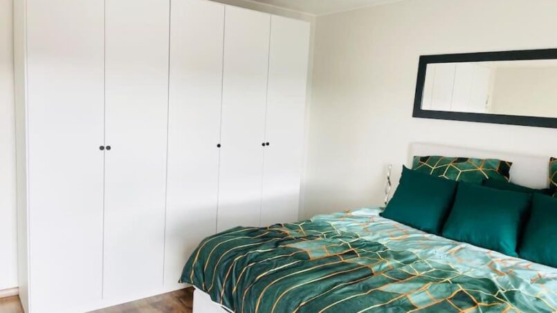 The bedrooms have queen size beds, wardrobes, bedside tables and lamps.