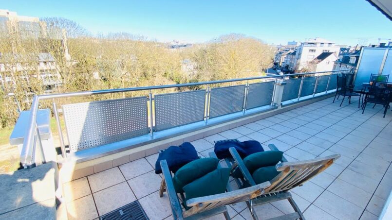 Large Penthouse Located in the heart of the city center with a stunning view on the Petrusse park. The Penthouse is 5 min walk to the tram and 100 meter from all grocery stores, restaurants, and the running park.