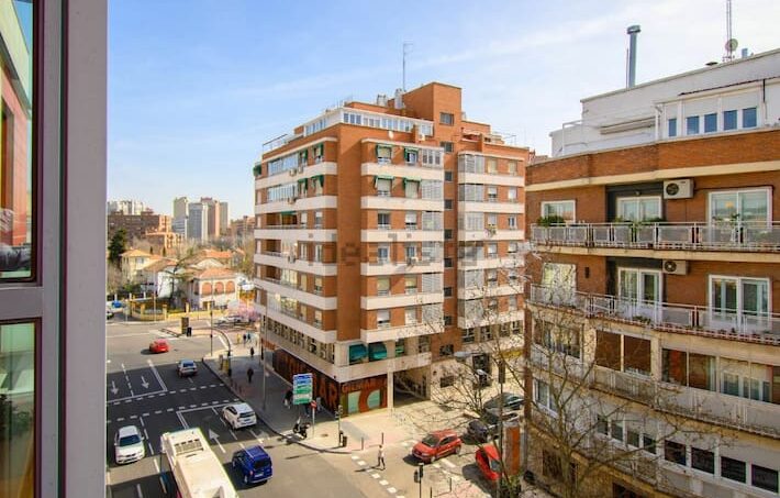 The apartment is within a development with a doorman, garden area and swimming pool in the heart of Madrid.