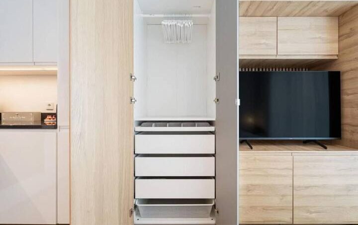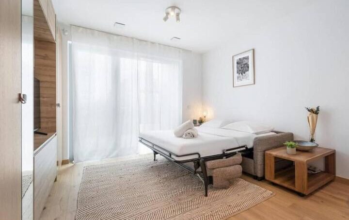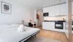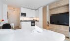 The Studio includes a living room with a comfortable double sofa bed, 1 bathroom with WC, a fully new equipped kitchen, a dining part, a working area, washing and drying machine.