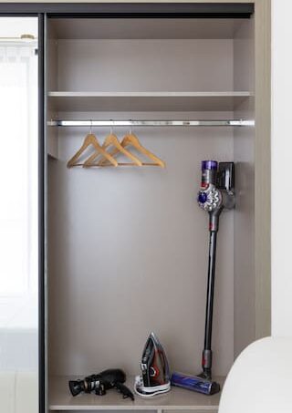 – Washing machine, dryer, hairdryer, iron and ironing board