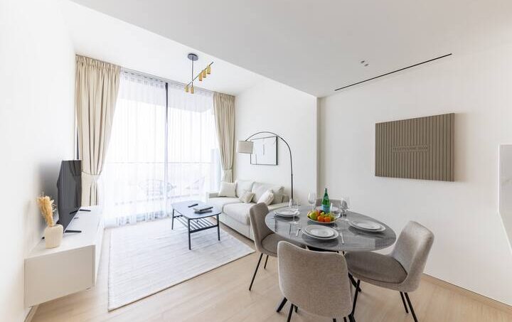 Welcome Home Apartments: 1BR for 4 guests in Binghatti Corner, JVC, 7 minutes to the bus station, supermarkets / restaurants within walking distance.