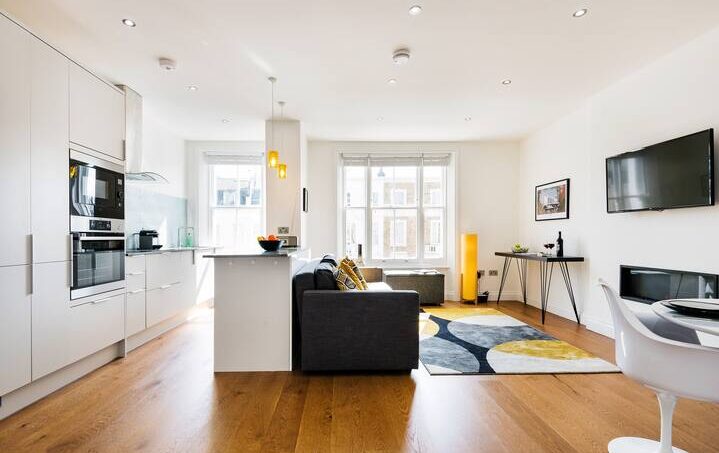 This stunning and bright 2-bedroom apartment, on the 2nd floor is located just 4 minutes’ walk from Earl’s Court Tube Station, with access to the Piccadilly and District Lines, which provide easy links to the City, West End and Heathrow Airport. There is a wide variety of restaurants and takeaways on your doorstep as well as a choice of supermarkets. This modern apartment is perfect to comfortably accommodate up to 6 people.