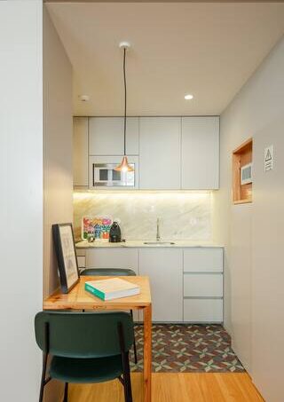The apartment is located on the ground floor and has 33 square meters. It features a double or twin bedroom (ask for your preference) in a 10 square meters mezzanine, living room with a sleeping sofa that turns into a comfortable double bed, kitchen and bathroom.