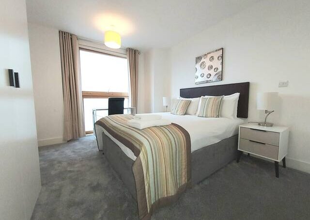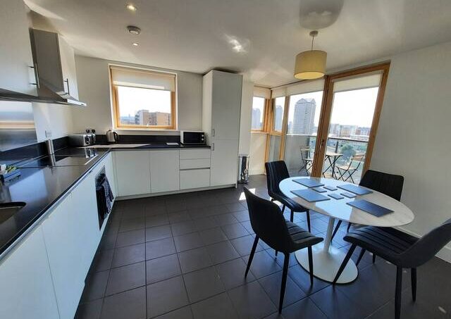 Benefiting from a balcony, 2 spacious double bedrooms, large eat-in kitchen, this apartment is a perfect home from home for your stay in London. The building has 2 passenger lifts, 24 hour security and is in a vibrant neighbourhood with lots of bars and fine dining close by. 7 minutes walk from Canary Wharf (Jubilee line tube) 3 minutes walk from South Quay (DLR) and approx 10 minutes walk from Elizabeth Line.