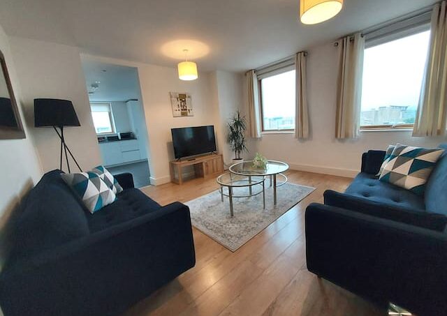 A super comfortable 2 bedroom serviced apartment with lovely views west across London.