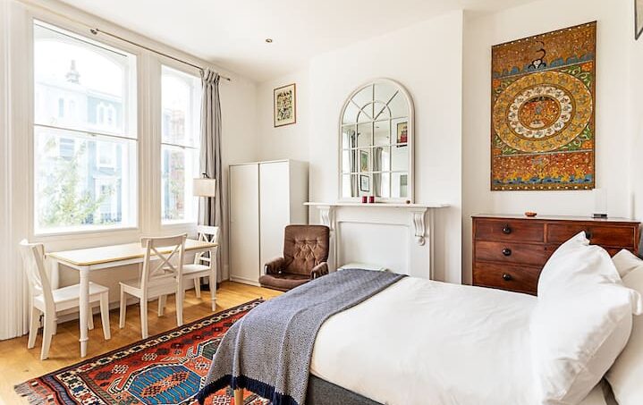The area surrounding the property is full of cafes, restaurants and shops. Less than one minute walk away on Portobello Road, you will find local vegetable and fruit stalls, as well as a world famous antiques market. If you would like some recommendations for places to eat nearby, we recommend Osteria Basilico or Mediterraneo for lunch, and Mike’s Diner or Bluebelles for breakfast. For great local British pubs, try the Ladbroke Arms or Windsor Castle. Local attractions include Electric Cinema, a vintage cinema with large red velvet sofas, and Honest John’s, a great vinyl record shop. Lots of locations from the film Notting Hill were filmed in the immediate vicinity, for example the Travel Bookshop, which is a two min walk away.