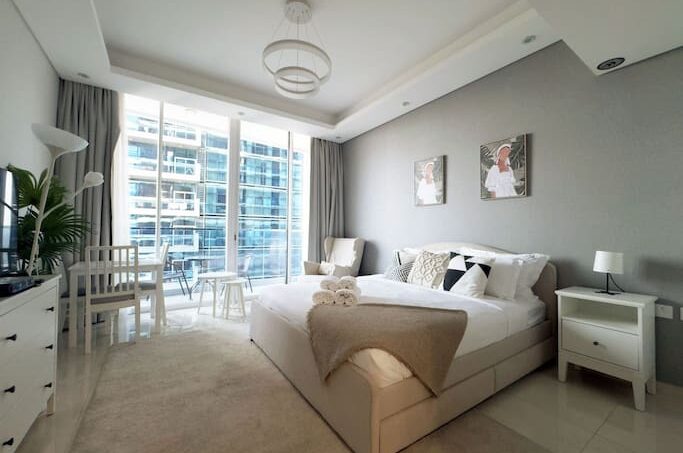 This amazingly furnished studio apartment is close to everything the city has to offer. It has a beautiful view and is ideal for 2 people, making it a perfect getaway for a couple. The building has 24-hour security services. During your stay, you will have access to the building’s swimming pool and gym.