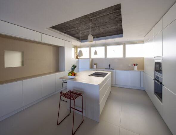 The bright living area invites you to enjoy all together and the modern American kitchen provides you with all amenities on the reach.