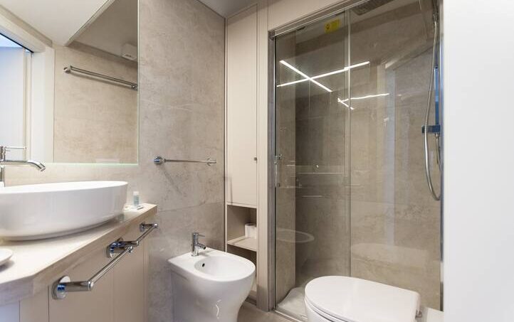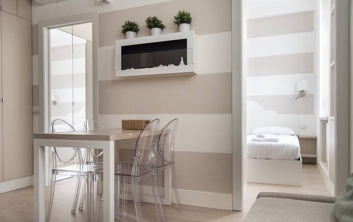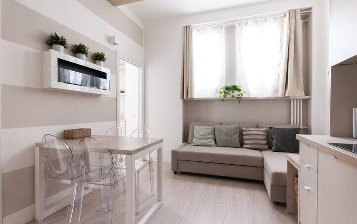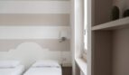 The apartment has a living area where there is a modern and equipped open kitchen, with a dining table and a sofa bed. The sleeping area, on the other hand, we find a double bed with the possibility, upon request, to separate it into two single beds and a walk-in closet.