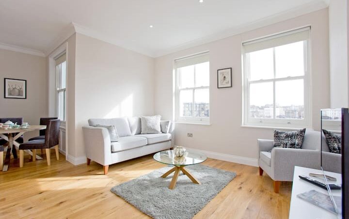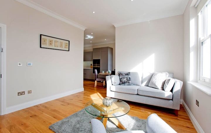 This light and airy 2 double bedroom apartment is in a self contained block of 1, 2 and 3 bed apartments offering great flexibility for larger parties, with all apartments finished to the same exacting standards and featuring real wood floors and state of the art underfloor heating throughout. Just renovated and refurbished this apartment has generous proportions and a pleasant contemporary feel sure to enhance the enjoyment and comfort of your stay.