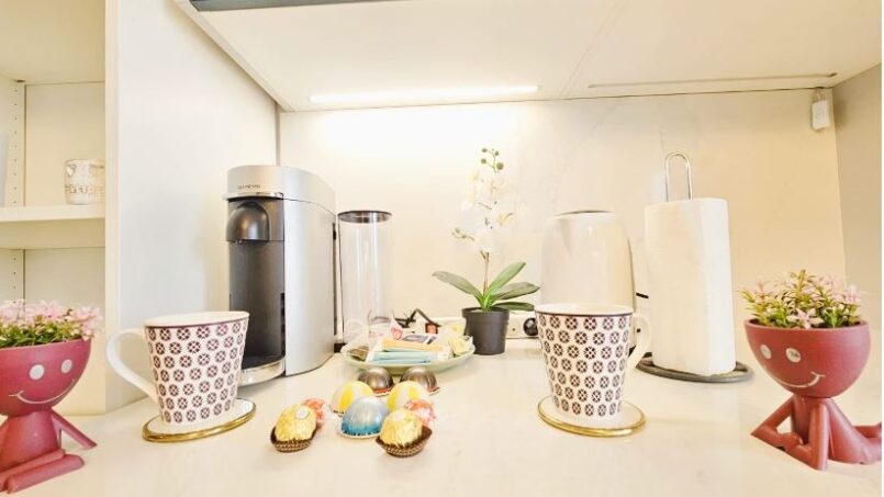 You’ll enjoy a spacious living area that opens onto a private terrace, ideal for relaxing after a day in the city.