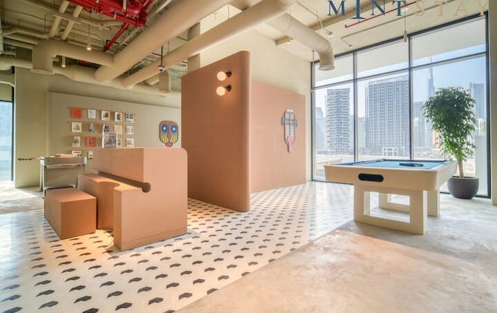 Beyond the stylish space, enjoy a range of amenities. Join the social kitchen for cooking classes, supper clubs, or recipe sharing – just a heads up, it’s a paid experience! Kick back in the “Hang-out” with pool, ping pong, or foosball – your vibe, your destress. Challenge friends or just lounge on our cozy poufs! Need a break? Hit the pool deck for a refreshing breather between meetings. It’s a top-notch 5-star spot to soak up some sun and sip your juice, with stunning Dubai architectural views in tow. For the active souls, the gym’s got you covered. Whether you prefer a relaxed or intense workout, we have the gear and space for all personalities, moods, and fitness levels.