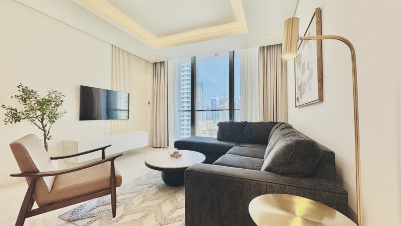 Step into our uber sophisticated and efficiently designed 1BR apartment, with stunning views of the Burj Khalifa. Ideally located in central Dubai at the prestigious Sterling By Omniyat Tower. Experience a seamless blend of style and utility in this cozy space, perfect for two guests. Within a mere 15-minute stroll, you’ll find yourself at the renowned Dubai Mall and Burj Khalifa, brimming with unparalleled shopping, dining, and entertainment options.