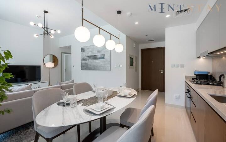 Unwind in this chic retreat that offers modern comfort just steps away from the sandy shores of Emaar Beachfront. Enjoy the refreshing sea breeze and catch fleeting glimpses of the shimmering ocean in this meticulously designed space with high-end furniture. Elevate your experience with exclusive amenities such as the breathtaking infinity pool, adding an extra touch of indulgence to your experience.