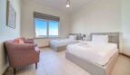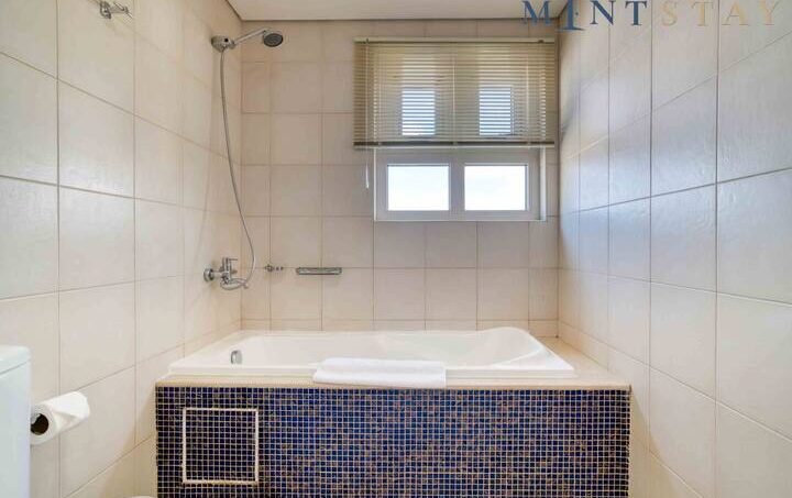 You’ll really like the second and third bedrooms, they’re as good as the main one. In the second bedroom, you’ll find a comfy bed with fancy sheets, and in the third, there are two snug beds ready to give you a cozy embrace. Relax in the chairs by the windows, enjoying the breathtaking views of the sea and beach. Store your belongings in the wardrobe for safekeeping. And if you feel like pampering yourself, there’s a lovely bathroom just down the hall with a spacious, inviting tub.