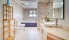 This bedroom is all about a cozy king bed stacked with pillows, offering more than just a sleeping spot – it creates a plush retreat after a busy day. If you fancy unwinding with a good book, settle into the comfy sofa, enjoy the sunlight streaming through the window, and relax. Your belongings, including those gram-worthy outfits, find a secure home in the wardrobe. And when it’s time for a bit of pampering, head to the en suite bathroom featuring a bathtub, showerhead, and a roomy vanity unit.