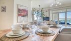 Take a look at this cool living room—it’s not like any other space, it’s like your own personal chill spot. The couch is super comfy, you might even forget there’s an awesome balcony with great views of the beach and sea. You can watch all your favorite Tv shows, grab some snacks from the kitchen (it’s got everything you need like a fridge, stove, oven, microwave, toaster, and kettle), and not miss a thing from this cozy living area. If you feel like hanging out, head over to the dining area for some fun chats. And don’t worry about cleaning up – we’ve got a dishwasher and a washing machine. Plus, there’s free Wi-Fi so you can stay connected!