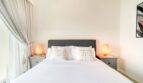 Treat yourself to the lap of luxury in the master suite, where you’ll find a king-size bed adorned with bedside tables and soft, ambient lighting courtesy of elegant lamps. The fully adorned windows not only grant access to a private city view but also allow the natural daylight to flood the room. You won’t have to worry about storage either, as fitted wardrobes stand ready to house all your holiday necessities.