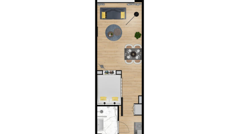 We have 139 fully equipped Studios. It also has several hotel facilities: gym, sauna, minimart, restaurant, bar and rooftop terrace with an amazing view across the area.