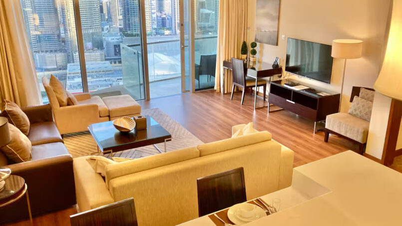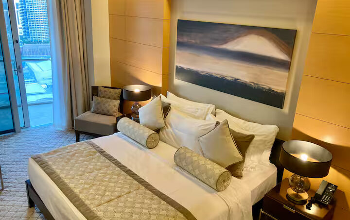 The cityscape of Dubai can be seen from the spacious balcony of this luxurious one-bedroom apartment. The Address Dubai Mall is home to a wide variety of first-rate facilities; including a fitness center, a games room, and an incredible infinity pool.