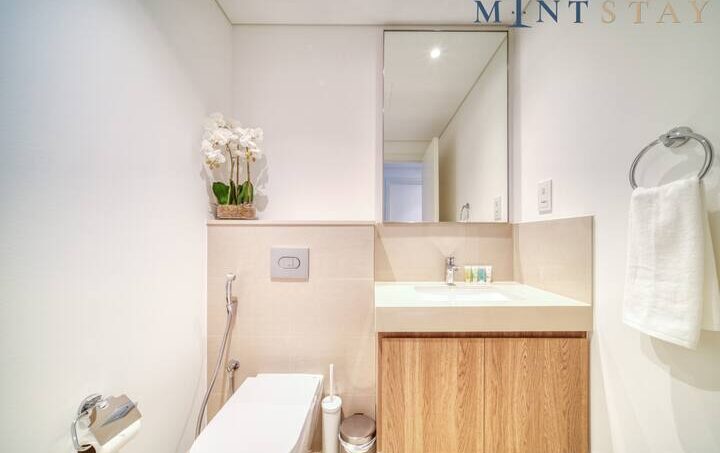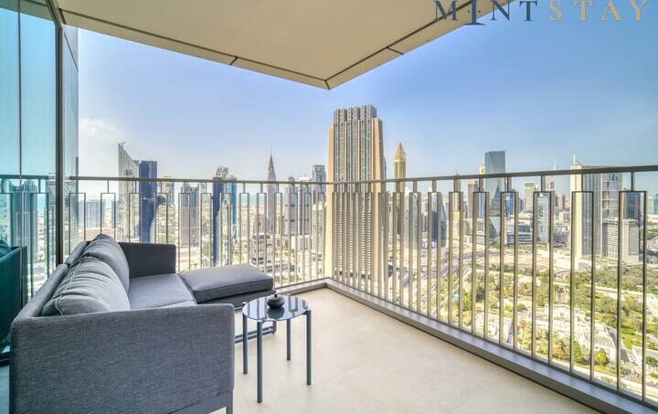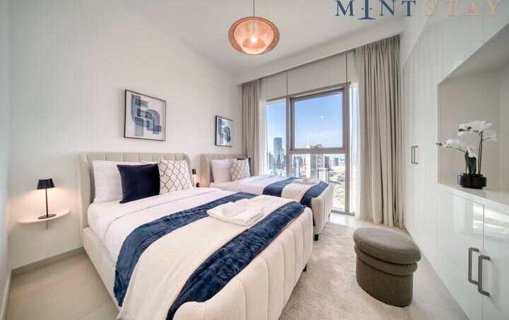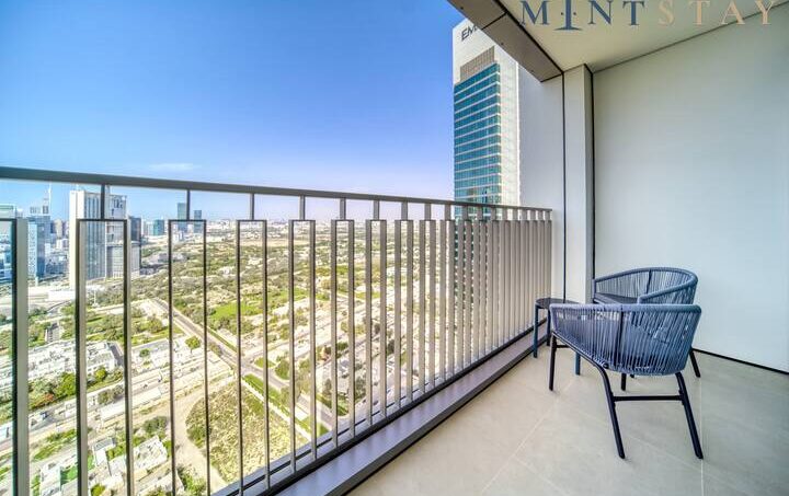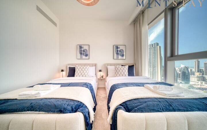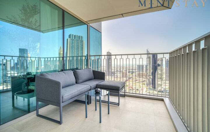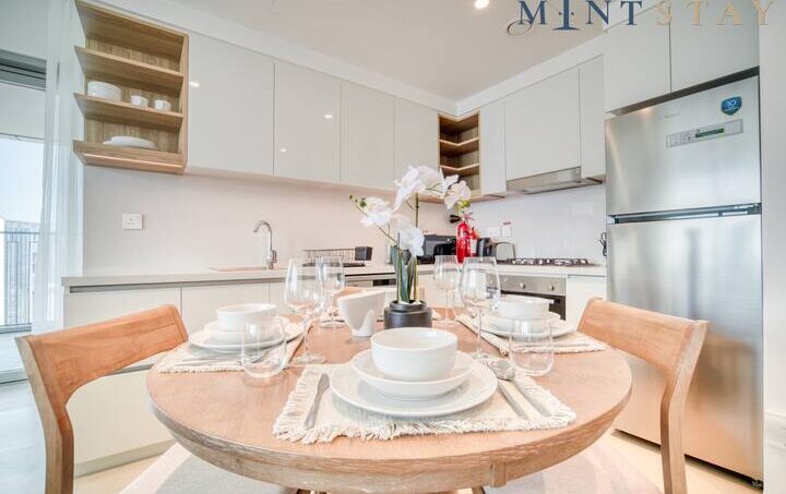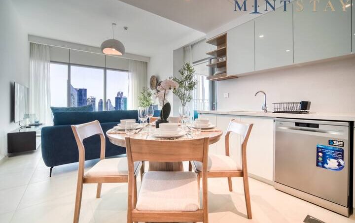 Just giving you the scoop on this amazing apartment. The views are unreal – you’ve got the Dubai skyline, the bustling city life, and a glimpse of the iconic Dubai Frame. And guess what – there’s a private balcony where you can kick back with your coffee but if you’re more of a homebody, no worries! The living room sofa is super comfy for some serious Tv time, and with lightning-fast Wi-Fi, you can easily connect with your family or friends in the digital world. And let’s chat about the kitchen – it’s stocked with everything you need to whip up a feast: fridge, oven, microwave, toaster, electric kettle, and both a Nespresso and drip coffee machine. You name it! After a tasty meal at the dining table, just toss those dishes in the dishwasher and let the washing machine do its thing while you relax