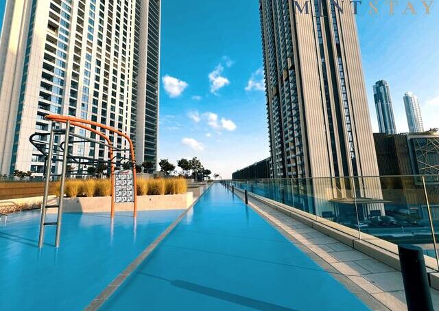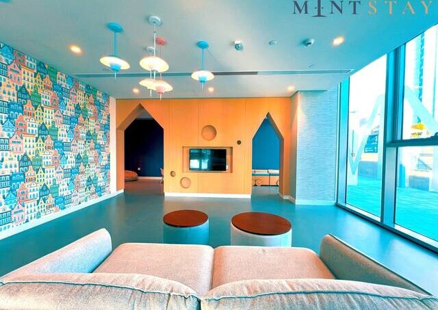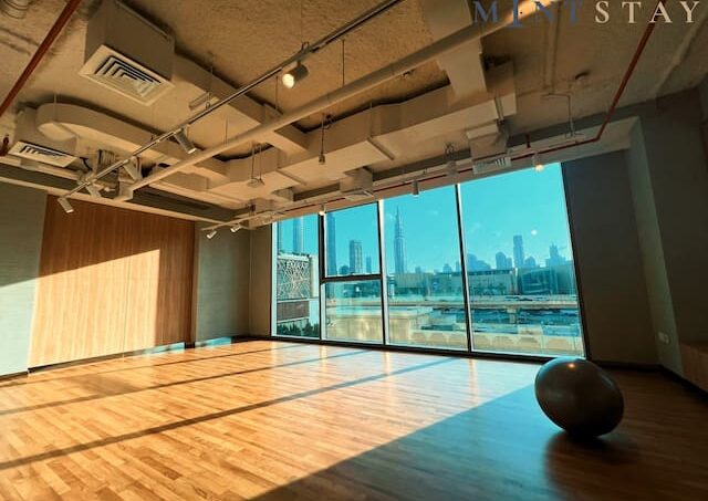 In addition to the two comfy bedrooms, those stunning bathrooms, you’ll have the cozy living area and fully fitted kitchen at your disposal. But the perks don’t end there! Take advantage of the fabulous amenities like soaking up the sun by the pool, staying active in the indoor or outdoor gym, or unwinding in the yoga and pilates studios. And if you’re with family or friends, the Bbq area is perfect for some delicious meals together. And there’s plenty of fun for the kids too, with both indoor and outdoor play areas! Plus, a multi-purpose hall for all your event needs, and let’s not forget about the convenience of having Dubai Mall nearby.
