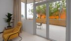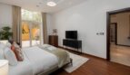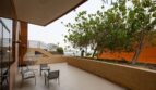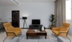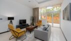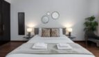 A vibrant open-planned space with a super stylish interior that features a sofa, two modern armchairs, a flat-screen TV and a dining table that seats six comfortably. This stunning two-bedroom apartment is air-conditioned throughout with a fully equipped kitchen to include all the necessary equipment for a seamless stay. The apartment’s large terrace is fully furnished to include a swinging day bed and table and chairs and can be accessed from both the bedroom and living area.