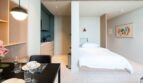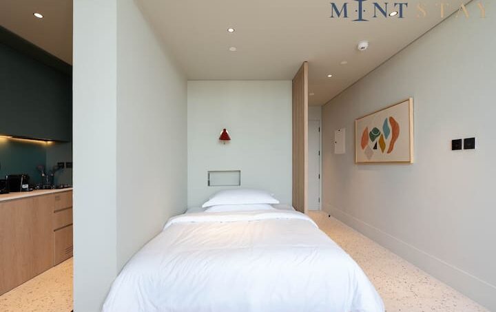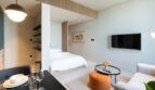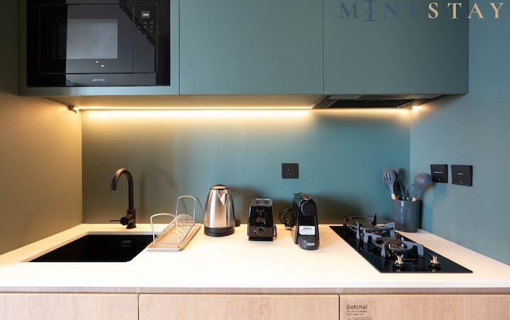 Get set for the ultimate blend of comfort and ease in this spot! Sunlight streams through the windows, filling the space with a cheerful glow. Take a load off on the plush sofa, right next to a trendy coffee table. Feeling hungry? The kitchen is fully equipped with everything you need to cook, from a fancy mini fridge to a Nespresso machine to keep you energized. Plus, say goodbye to laundry woes – our washing machine has got your back!