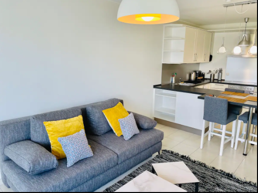 The apartment includes 1 big bedroom with its private terrace 1 bathroom, a sunny livingroom with its private terrace and a fully equipped kitchen, a dining part, a working area
