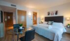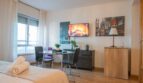 The studio is divided into two parts, with a separate kitchen and a bedroom with en-suite bathroom, offering privacy and comfort.