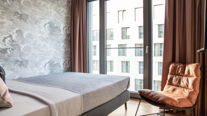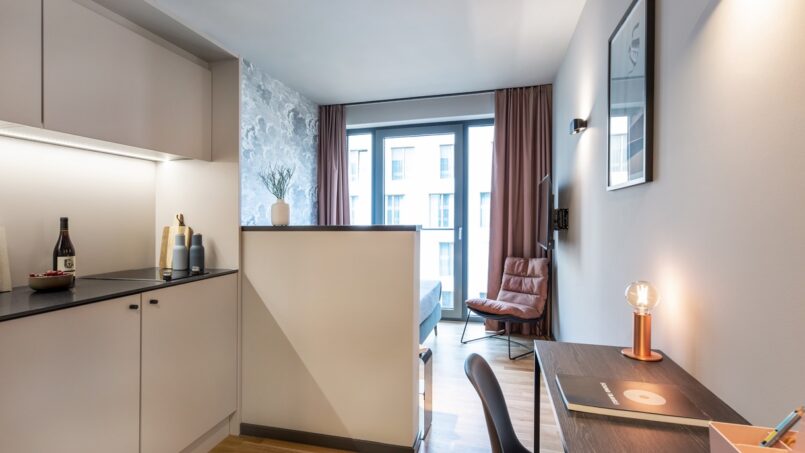 APPROX. 20 SQM // COMPACT, BUT FULLY EQUIPPED: IDEAL FOR THOSE WHO ARE TRAVELING ALONE. Small, but impressive: the Xtra Smart ipartment offers the most important functions for a comfortable stay. Ideal for those who are traveling alone and appreciate an unbeatable price-performance ratio. A customized designer kitchen, a box spring bed and the working area are skillfully integrated.
