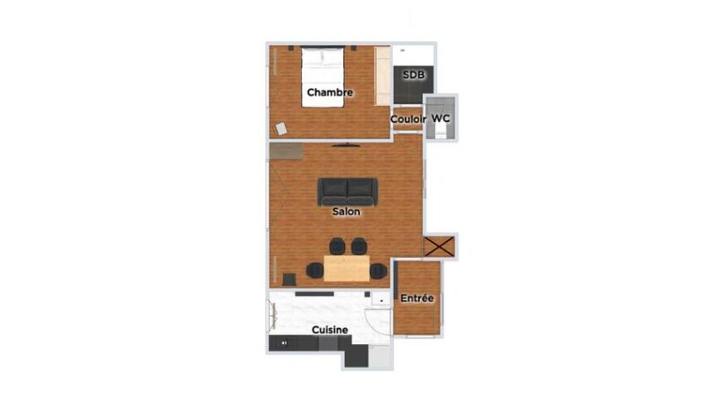– Une table à manger avec des chaises;