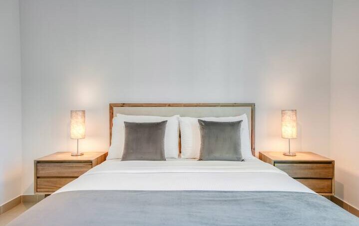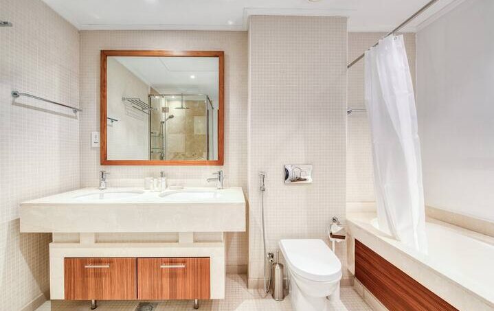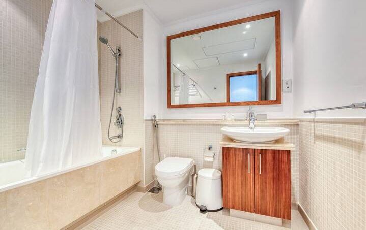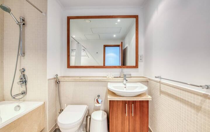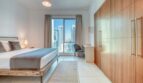 The master bedroom is beautifully bright with plenty of space for all of your Dubai finds, coupled with a stunning marina view. Furnished with a king-size bed with premium bedding, bedside tables with lamp lighting and built-in wardrobes for your convenience. The en suite bathroom features a fitted tub with shower facilities and a separate walk-in shower unit with top quality finishing.