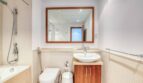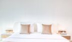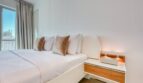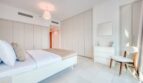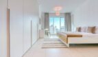 The second bedroom has a community view that peeps out to the sea. It is furnished with a queen-size bed with premium bedding, bedside units, fitted wardrobes and plenty of room. The en suite bathroom has a fitted tub and top quality finishing.