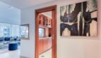 A multi-functional space, the living area of this premium apartment overlooks the glistening Dubai Marina and yachts passing by. It is furnished with a 5 seater sofa, coffee table, TV unit and a flat-screen TV, with a separate dining area with table to seat up to six comfortably. The fully fitted modern kitchen comes complete with all the necessary appliances needed for a seamless stay, with a serving-hatch to allow for the light from the living space to stream through.