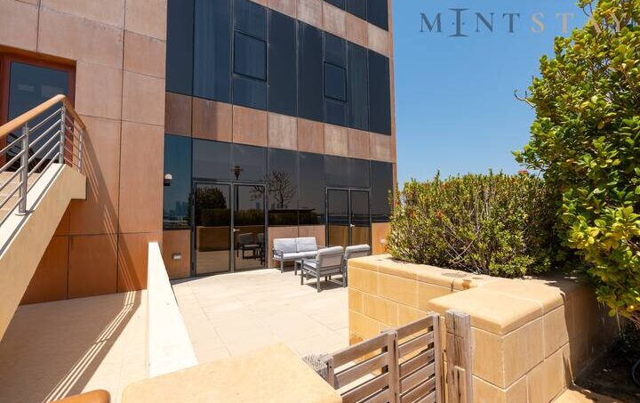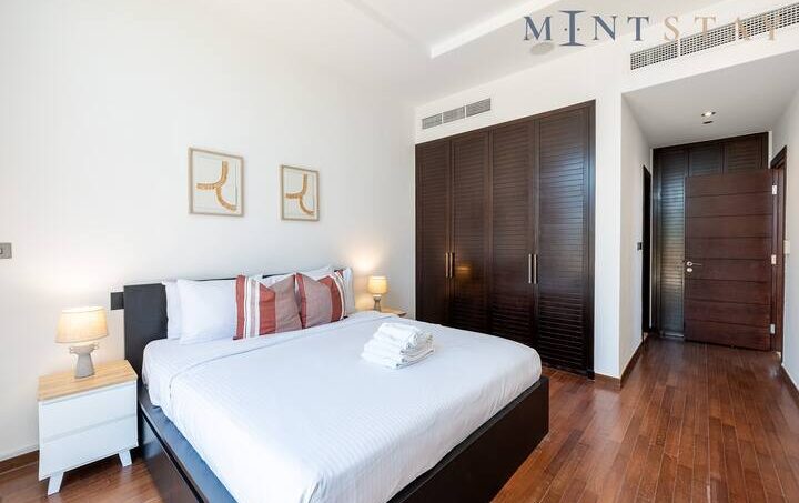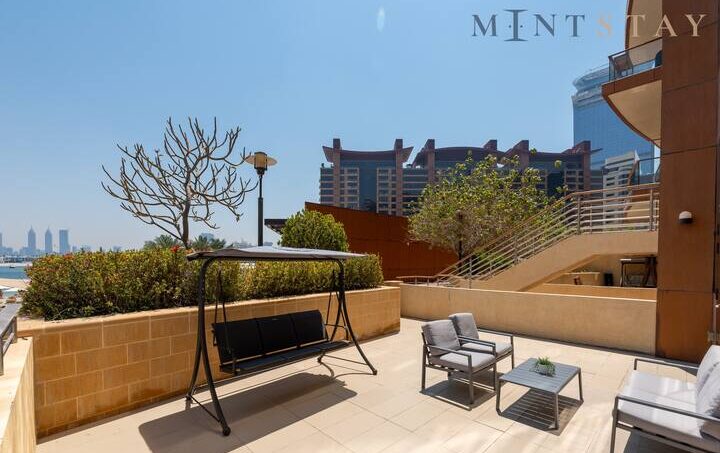 This residence is merely a 10-minute journey from the bustling mainland encompassing Dubai Marina, JBR, and beyond, this elegant apartment welcomes you with a vibrant open-plan layout. Adorned with tasteful furnishings, including a stylish sofa set, a flat-screen TV, and a six-seater dining table, this space exudes charm. Throughout the entire two-bedroom apartment, you’ll enjoy the comfort of air conditioning and the convenience of a fully equipped kitchen, ensuring a seamless stay. Accessible from both the bedroom and living area, the spacious terrace beckons with its well-appointed furniture, perfect for moments of relaxation.