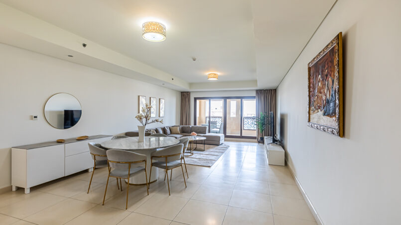 Beautiful 3 bedroom apartment with Maid room in The Palm Jumeirah, fully furnished with beautiful décor, giving a light toned color which make you submerge yourself in peerless comfort within our meticulously crafted space, seamlessly blending style and convenience. The apartment is designed comes with amazing balcony with a great view, modern and practical elements which provides maximum comfort and the best experience during your visit in Dubai. Located on The Palm.