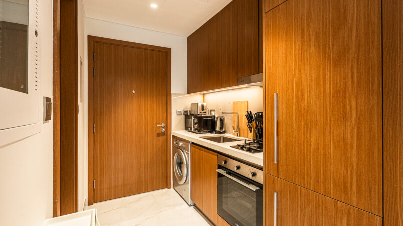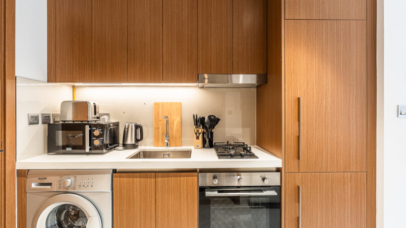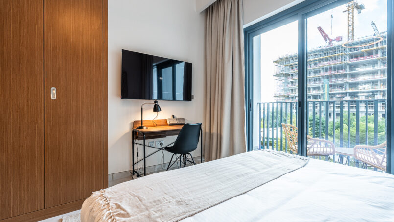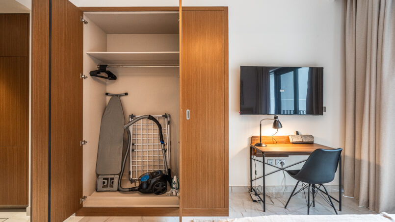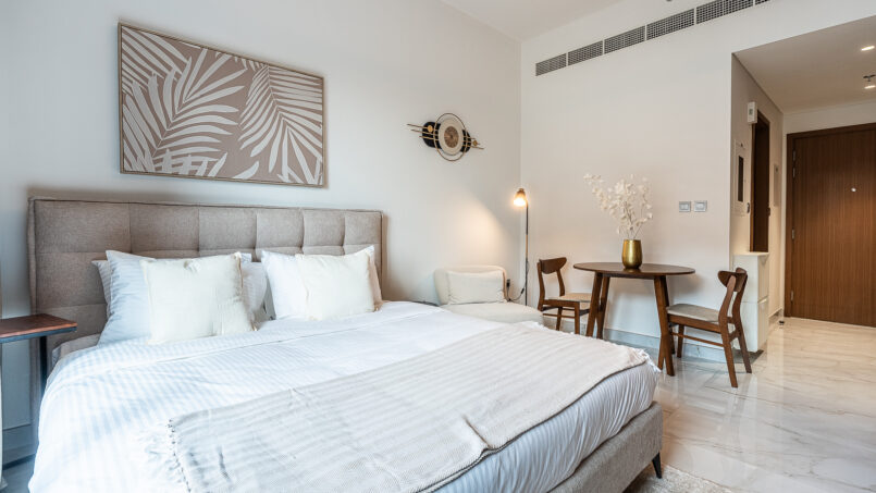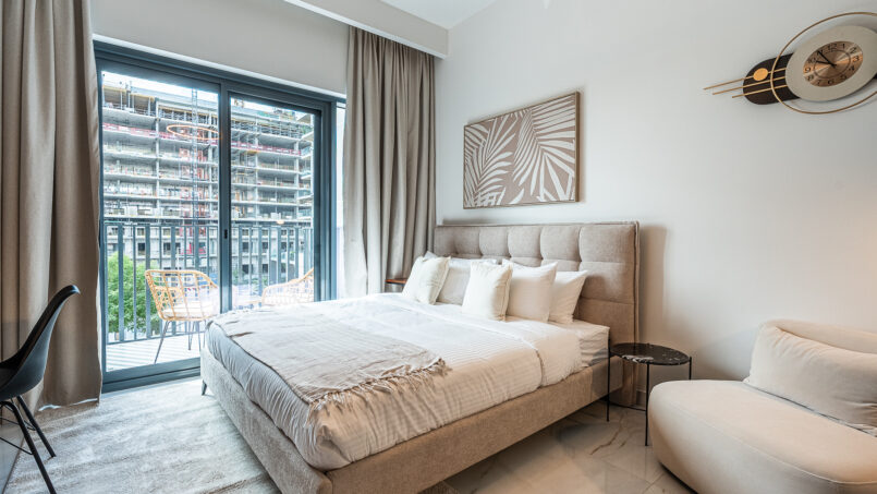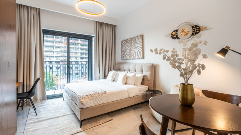 Discover this amazing and newly furnished studio apartment with modern furniture and neutral colors that ensure a calming, laidback, and stylish environment. Thoughtfully designed apartment, spacious and inviting. It features a kitchen, fully equipped with all the appliances. The space also consists of a TV and dining area. The bed is arranged with high quality matrass, fresh linen with towels, large wardrobe and office corner. The bathroom is modern and filled with toiletries. The apartment is designed with bohemian elements creating a very calm and tranquil atmosphere Our guests can simply move in and start living as this lovely apartment is equipped with everything they might need, to ensure a smooth and perfect stay!
