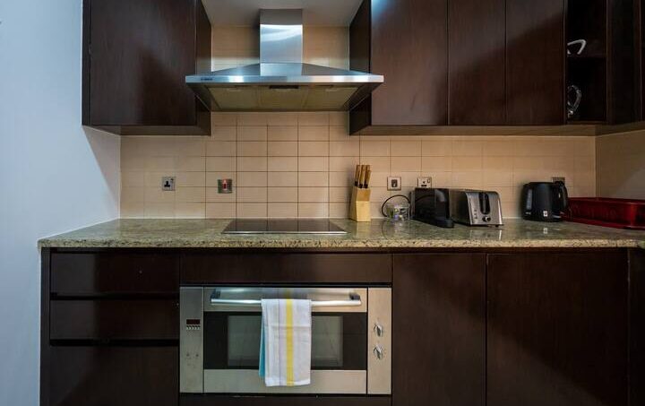 – Fully equipped kitchen (including coffee machine, teapot, toaster, microwave, stove, oven, cutlery, and kitchenware)