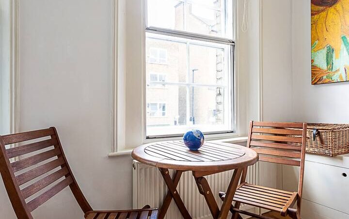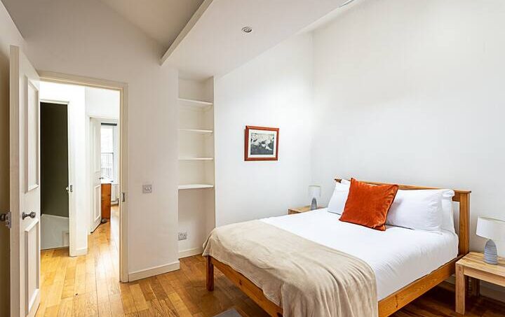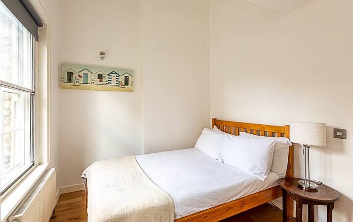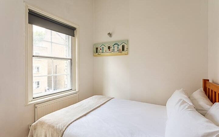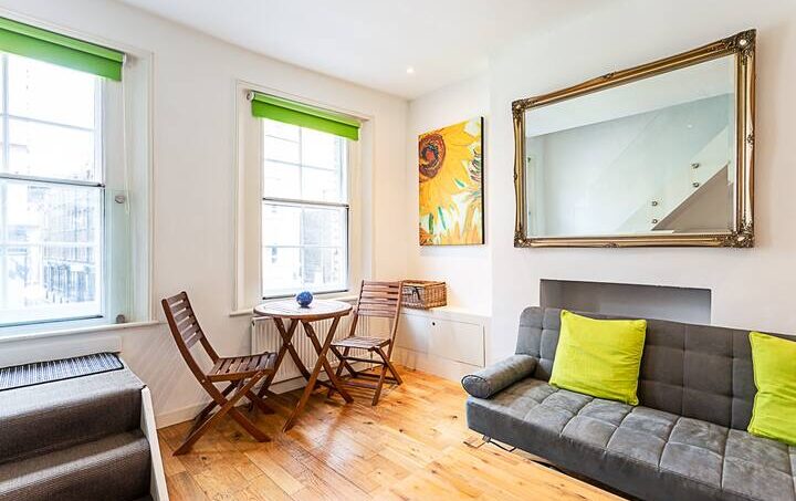 Located on the ground floor, this beautiful Central London flat can comfortably accommodate up to four people. The smoke-free property features a living room, two bedrooms, a bathroom, and a kitchen.