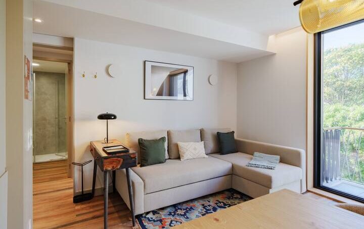 One bedroom apartment ideal for business stays. Can accommodate up to 3 people. Feel Porto Firmeza Coworking & Flat 4.1 is a cosy flat with around 40.6m² and is located within a 5-minute walk from Mercado do Bolhão.The bedroom consists of a queen-size bed that can be converted into two single beds, a sofa bed in the living room and a bathroom equipped with a shower.