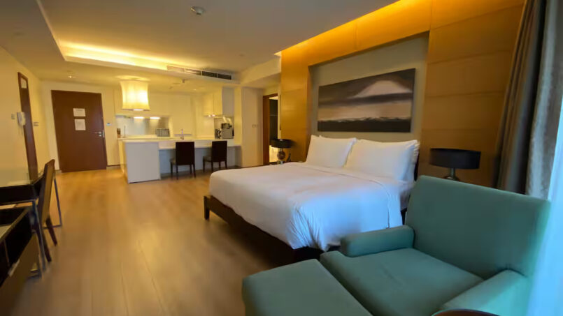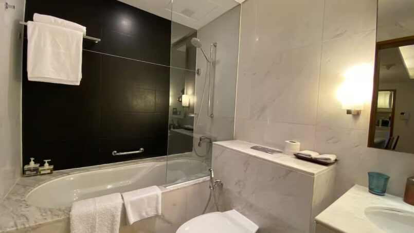 One of the studio’s biggest draws is its convenient location. Address Dubai Mall is a five-star hotel with an outdoor infinity pool that looks out over Burj Khalifa and is located in Dubai Mall.