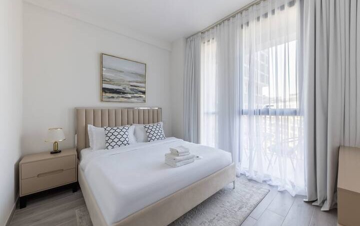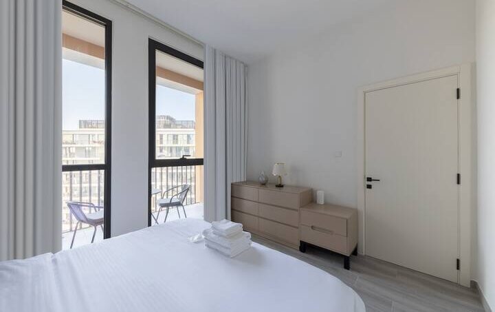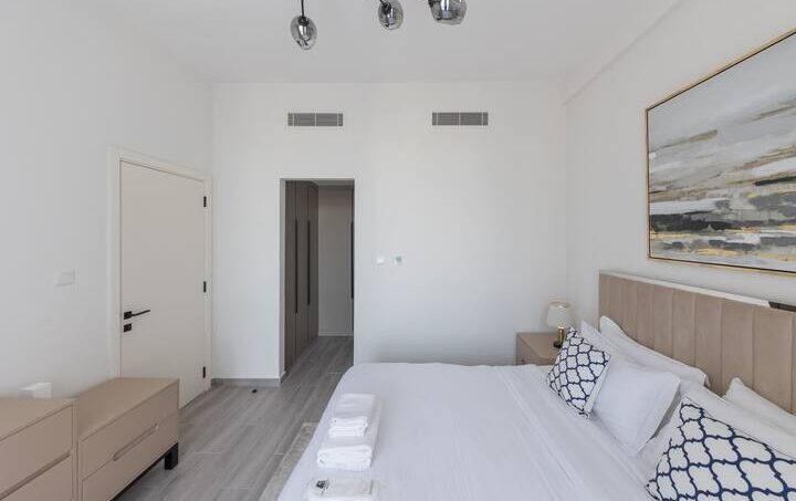Welcome Home Apartments: 1BR for 4 guests in Noor 4, Production City, 2 minutes to the bus station, supermarkets / restaurants within walking distance.