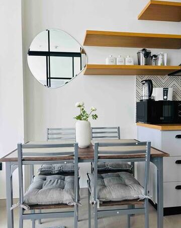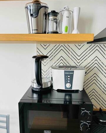 The only thing it does not have is a dishwasher. You can leave the dishes dirty after you move out and we will happily clean them for you.